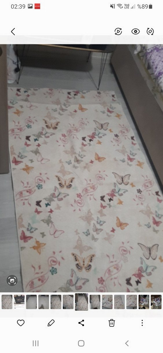 Hafif, çok renkli kelebek desenli, yumuşak sentetik kumaştan odalara neşeli bir dokunuş katıyor. Önü Yeni Arkasında Sadece Lekeleri Var Görselde Paylaştım En 120 cm Boy 218 cm