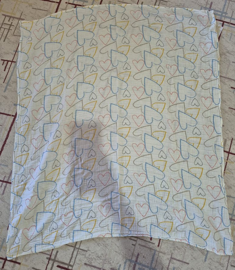 Keten kumaştan, pastel çok renkli çocuk battaniyesi, yumuşak ve nefes alabilir dokudadır. Hafif kalp desenleri bulunur. ️