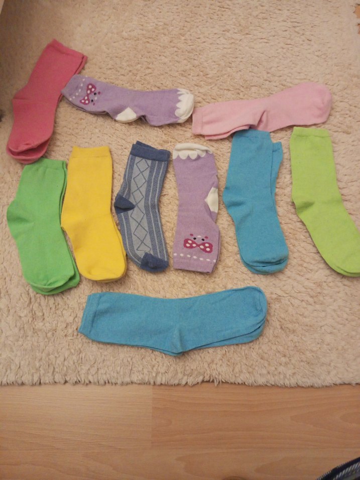 Çok renkli çoraplar, pastel tonlarda yumuşak örgü kumaştan yapılmıştır. Çoğunlukla desensiz olup bazıları küçük süslemelere sahiptir. 10 çift sıfır ürün