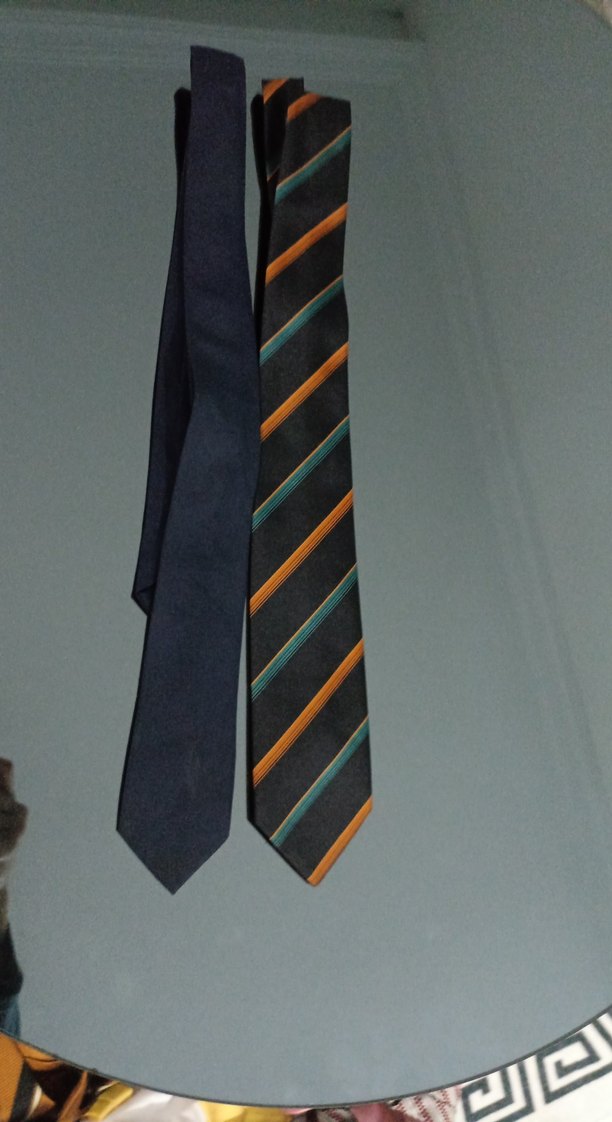 Bu erkek kravatı, koyu tonlarda olup turuncu ve mavi çok renkli çapraz çizgilere sahiptir, klasik iş stiline retro bir dokunuş katar. ikisinin fiyatıdır