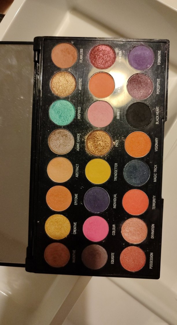 Mat ve simli çok renkli koyu tonlarda göz farı paleti, çeşitli makyaj seçenekleri sunar.