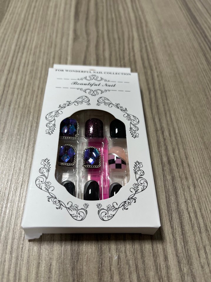 Çeşitli desen ve dokulara sahip çok renkli koyu tırnak süslemeleridir. 24 adet tırnak 24 adet yapıştırıcı ve bir adet Törpü