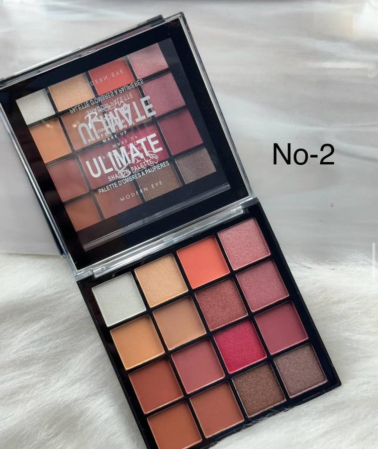 Koyu tonlarda çok renkli göz farı paleti, çeşitli dokularla cesur göz makyajı için uygundur. Üzerinde No-2 Ultimate yazmaktadır. Nyx far paleti.