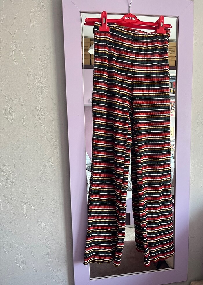 Esnek kumaşlı çok renkli pamuklu pantolon