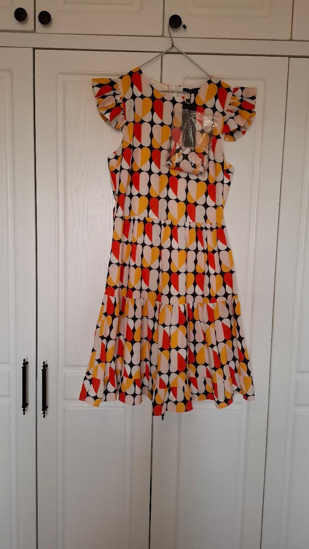 Çok Renkli Mini Volanlı Kadın Elbise yeni etiketli