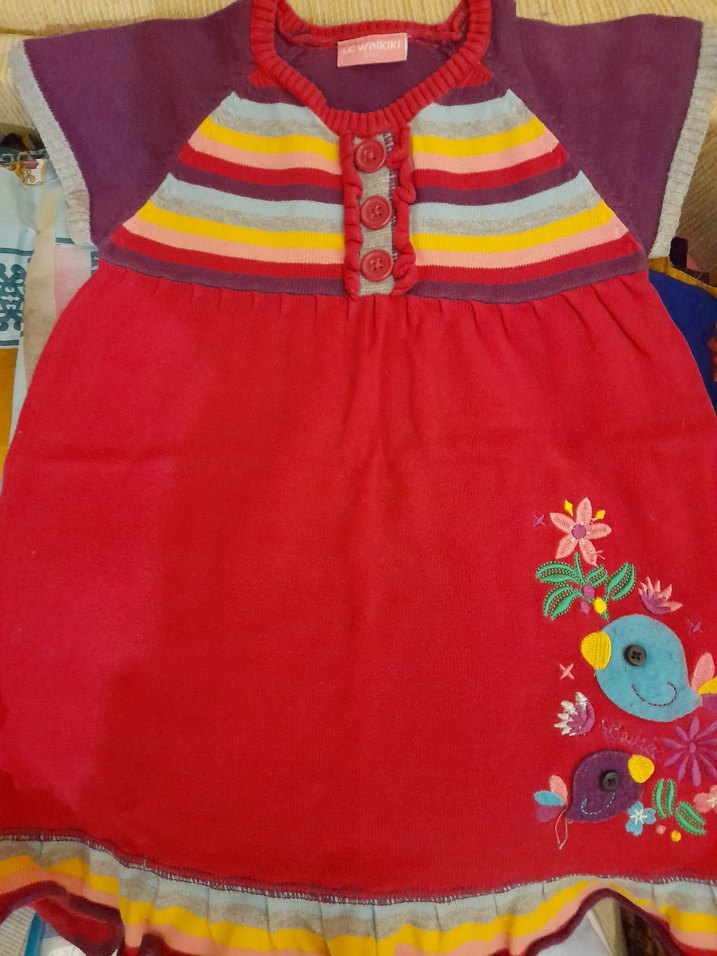 Çok Renkli Nakışlı Kız Elbisesi-3 yaş temiz triko