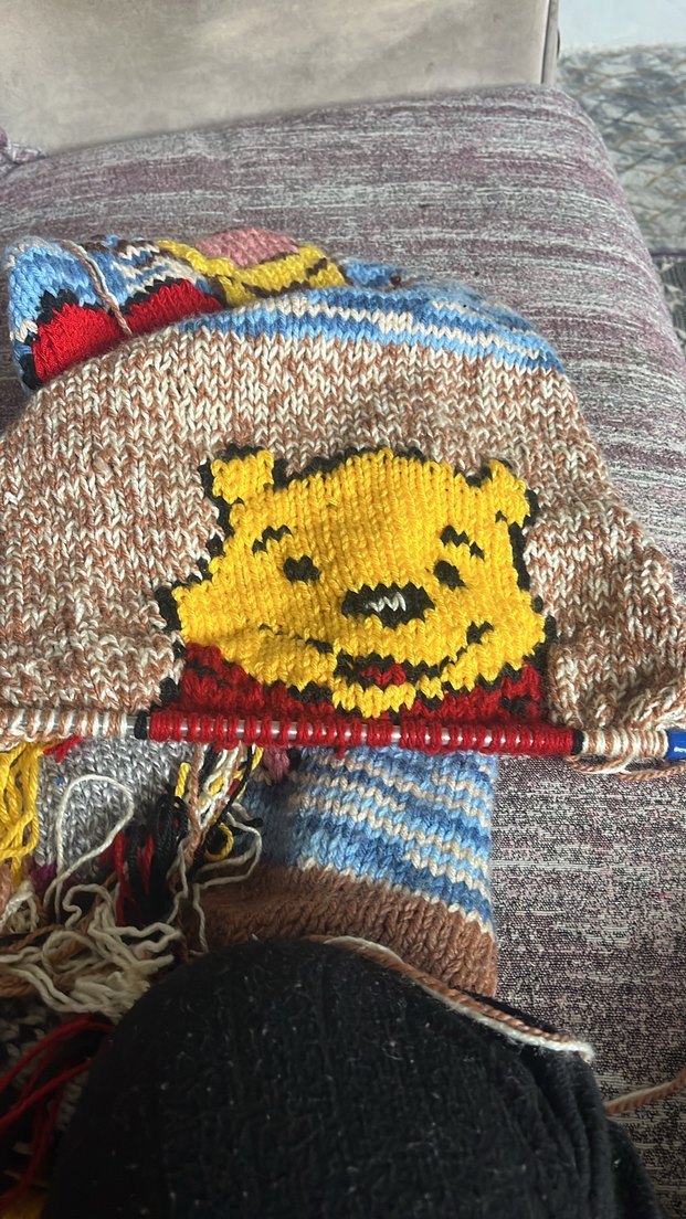 Yumuşak örgüden yapılmış, çok renkli ve nakışlı desenlere sahip atkı.