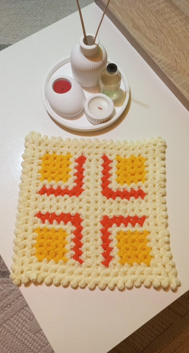 Hafif tonlarda, geometrik desenli çok renkli örgü banyo lifi