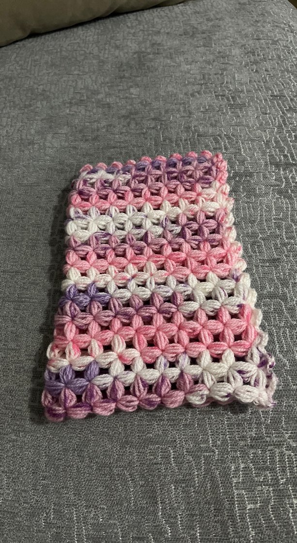 Pembe, mor ve beyaz tonlarında çok renkli örgü lif
