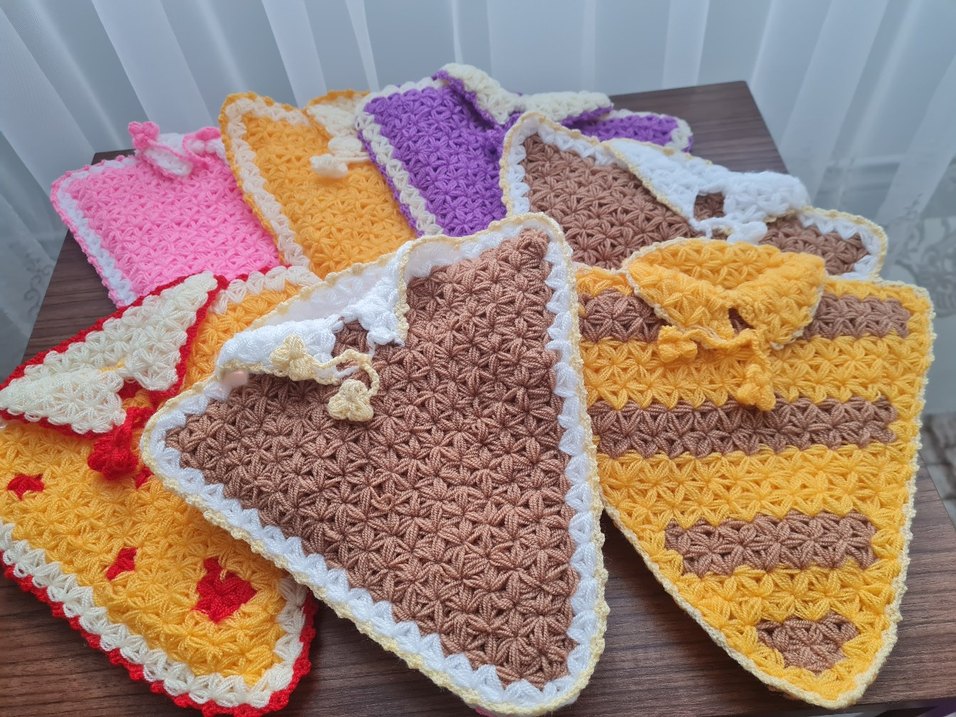 Yumuşak dokulu, üçgen şekilli çok renkli örgü banyo süngerleri, nazik cilt temizliği için uygundur.