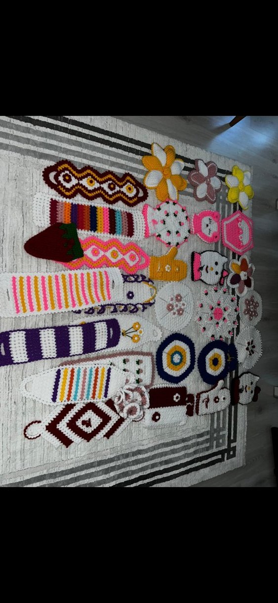Çiçek ve geometrik desenlerde çok renkli örgü banyo süngerleri, banyo eşyalarına canlı ve dekoratif bir dokunuş sağlar.