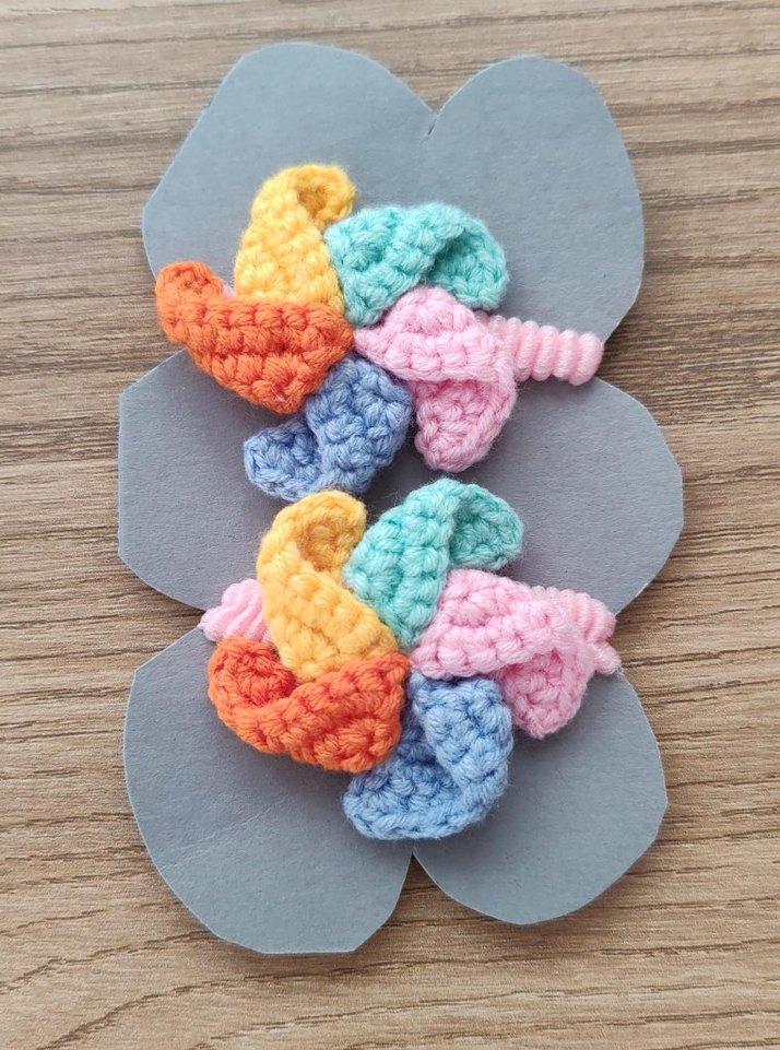 Pastel renklerde, örgü ve nakış detaylı çok renkli çocuk tokaları. Bohem tarzı için uygun, şık ve trend bir görünüm sağlar.