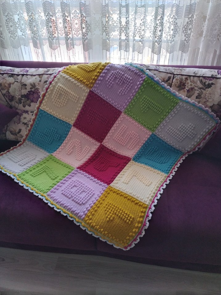 Pastel tonlarda çok renkli, dokulu karelerden oluşan örgü çocuk battaniyesi, zarif dalgalı kenarıyla dikkat çekiyor. Nako beybi antibakteriyel iplerle örülmüş yumuşak dokusu var. eni 90 cm boyu 95 cm.