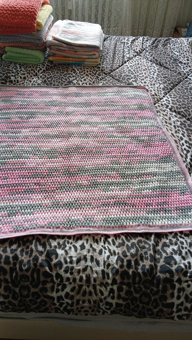 Yumuşak gri tonlarda çok renkli örgü çocuk battaniyesi, sıcaklık ve konfor sağlar.