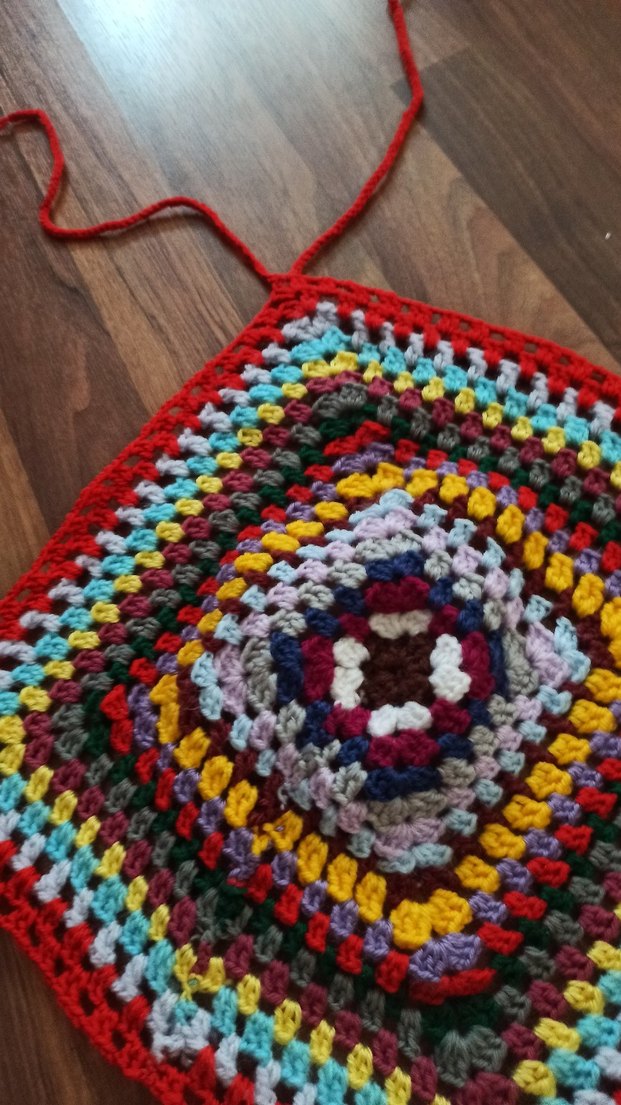 Canlı renklerde, bağlama ipleri olan çok renkli örgü crop kendi el işim son fotoğraf başka bir örnekten alınmıştır üstte duruşunu göstermek için eklendi