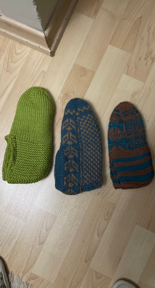 El emeği Farklı desenlere sahip üç adet koyu çok renkli örgü Çetik yeni