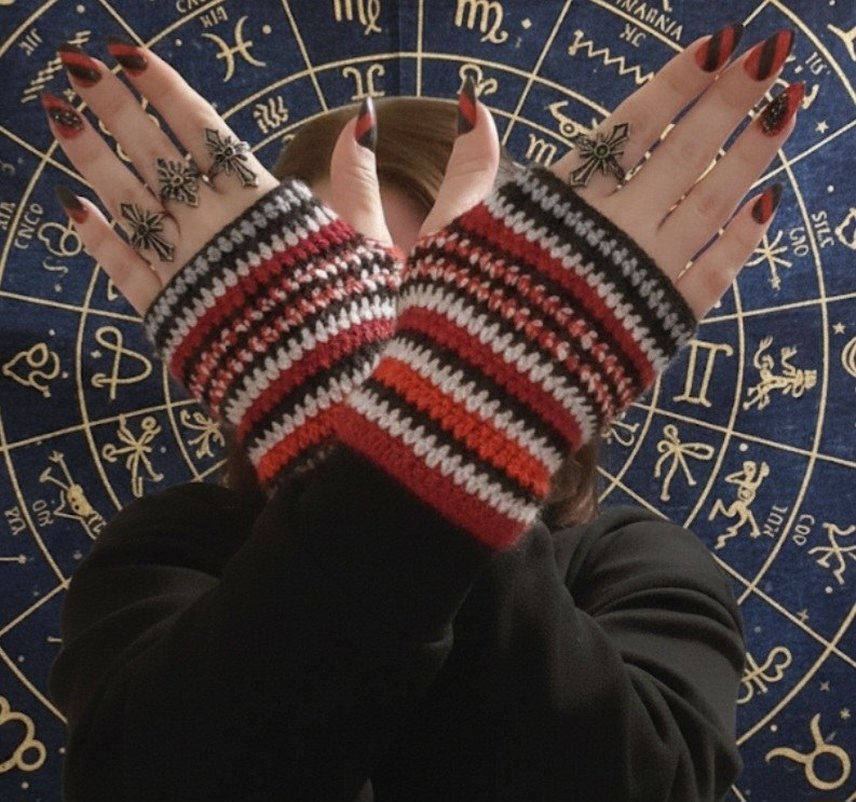 GÖRSEL BANA AİTTİR KARGOYA HAZIR ÜRÜN DİREK SATIN ALABİLİRSİNİZ Koyu tonlarda çok renkli çizgili örgü kadın eldiven, bohem ve retro tarz için uygun.