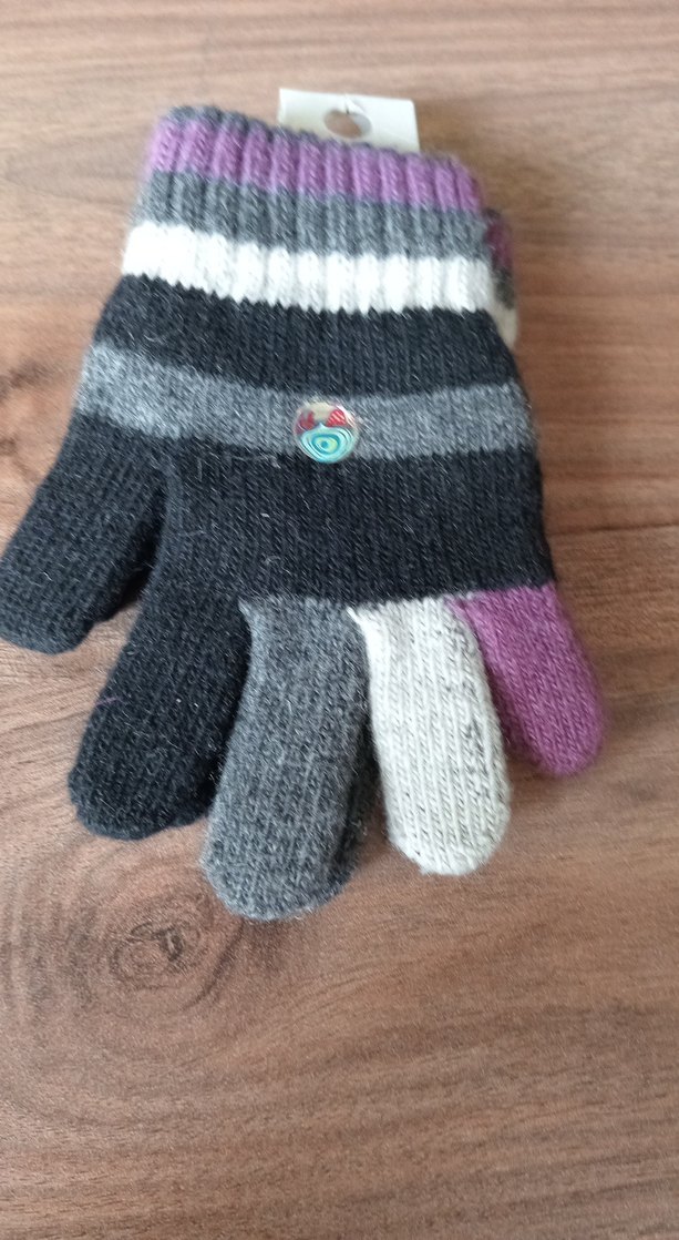 Çok renkli örgü kadın eldiveni, gri tonlarında, bohem ve retro tarzıyla rahat bir kullanım sunar.
