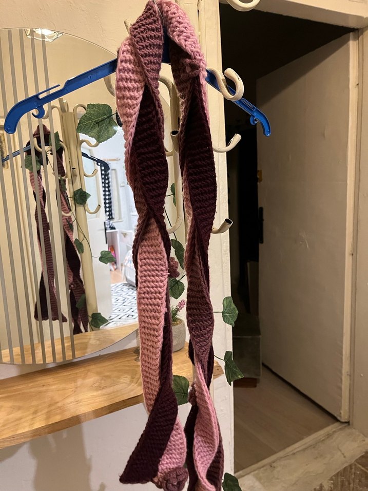 Koyu çok renkli, örgü kumaştan bohem tarzda kadın şalı, gül desenli rahat ve modaya uygun bir görünüm sunar.
