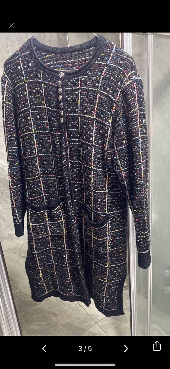 Bu kadın kabanı, çok renkli desenli örgü kumaştan uzun kollu ve uzun boyludur. Çentikli yaka ve rahat kesime sahiptir, günlük sokak stiline uygundur.