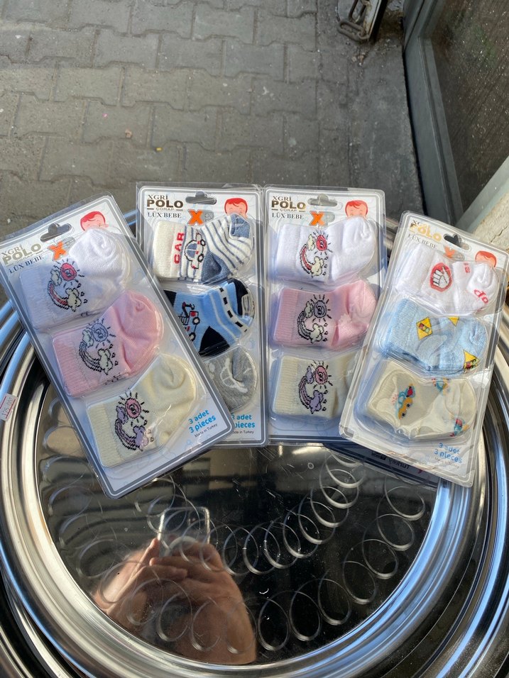 Çeşitli eğlenceli desenlere sahip pastel renklerde bebek çorap seti. Her sette yumuşak, rahat kumaştan