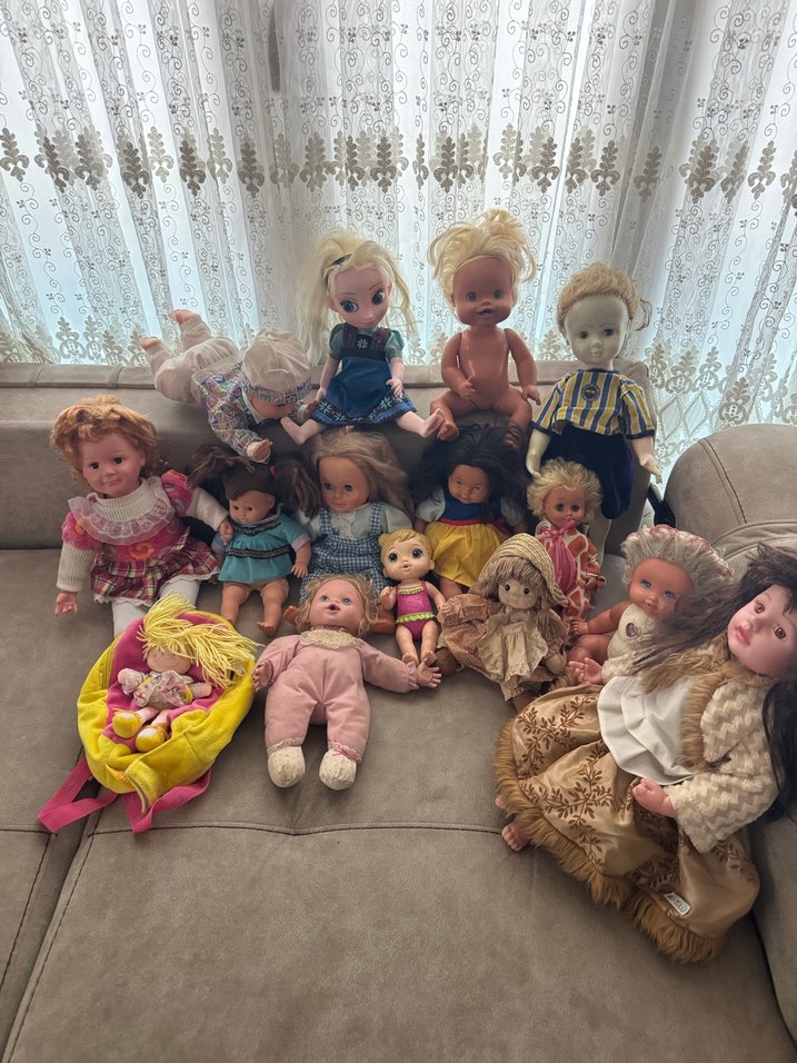 Çeşitli boy ve tarzlarda pastel renklerde bebek koleksiyonu, yumuşak ve klasik tasarımlarla. Koleksiyon veya oyun için uygun.