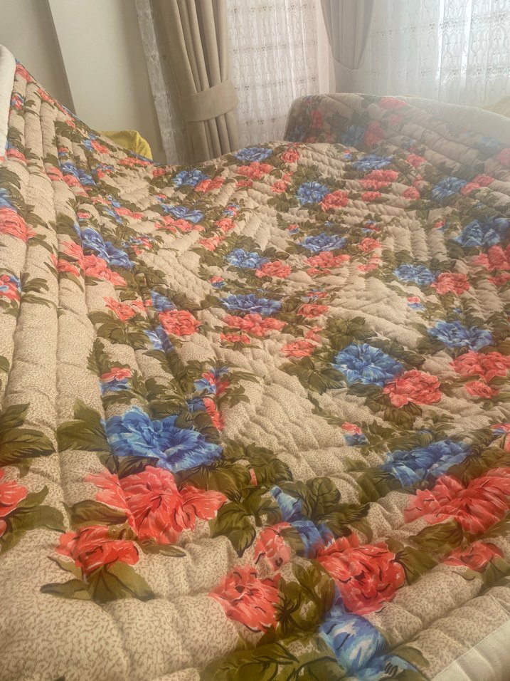Yumuşak kumaştan, pastel tonlarda çok renkli çiçek desenli yatak örtüsü, odanıza sıcaklık katar. Boyu 214 cm en 173 cm TEKLİFLERE AÇIKTIR.