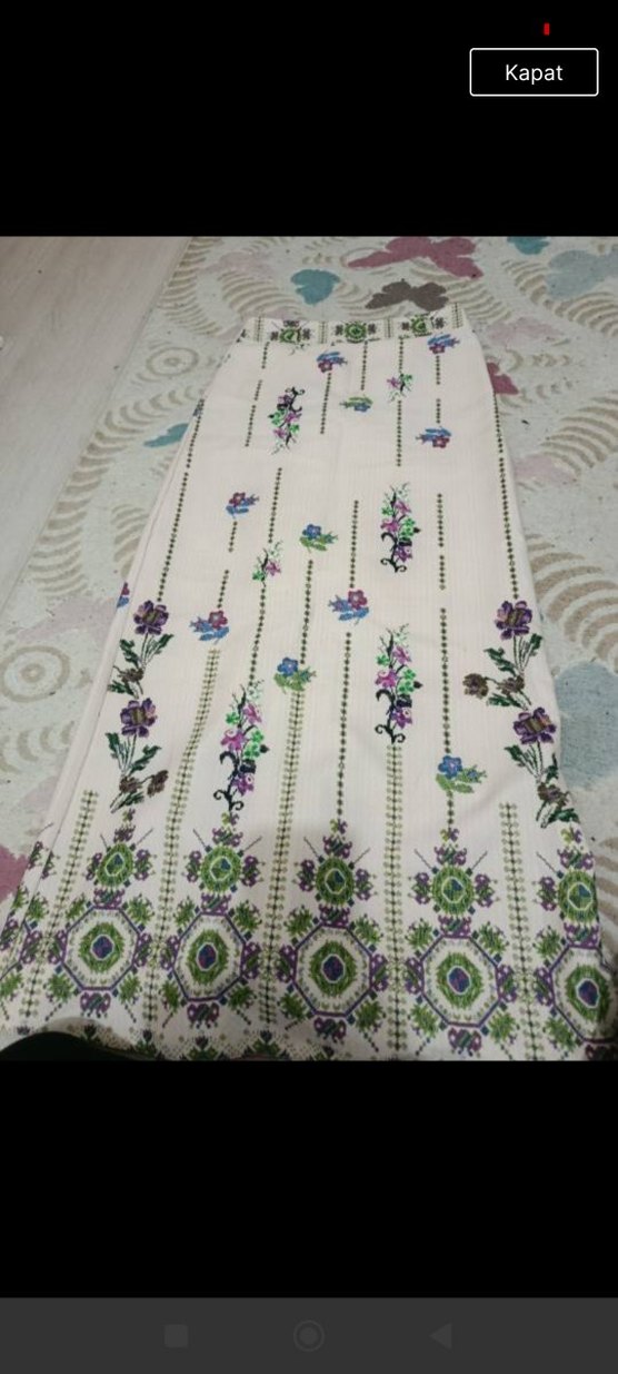 Kadın şalı, çok renkli çiçek desenli pileli tasarıma sahip, hafif sentetik kumaftan yapılmıştır. Bohem ve retro tarzını yansıtır.