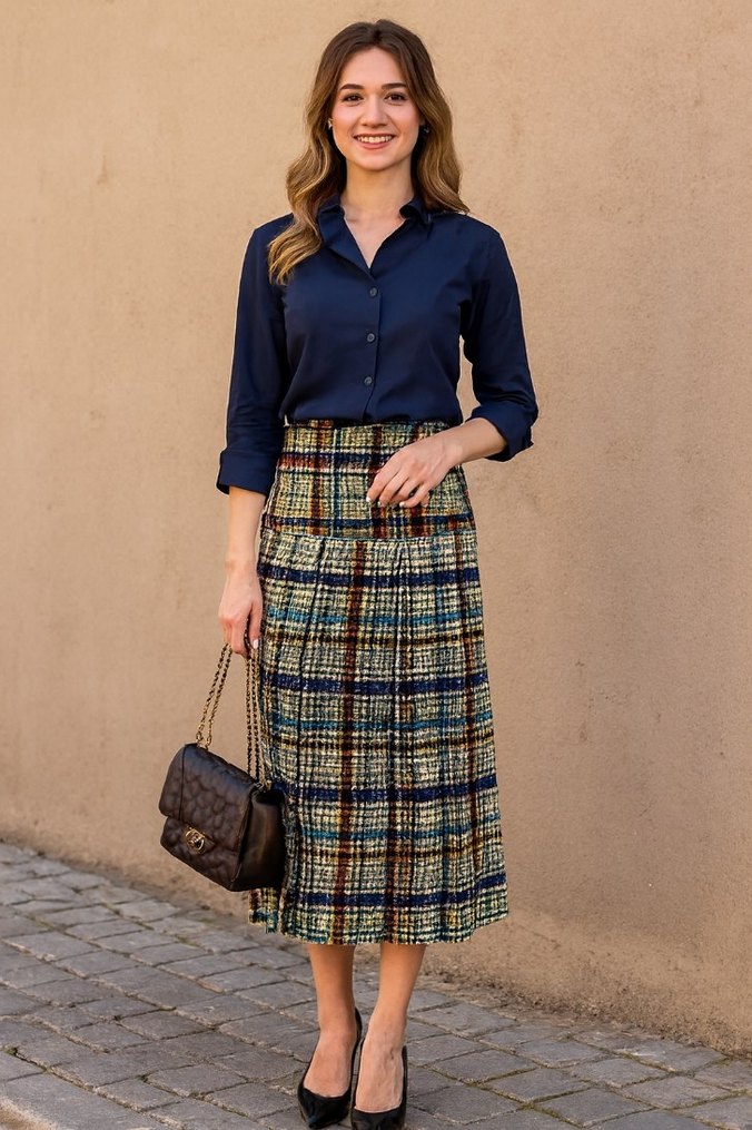 Çok Renkli Pilili Uzun Kadın Etek