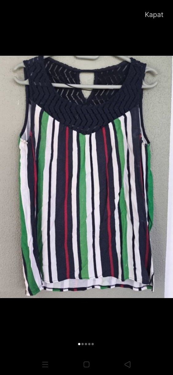 V yaka, kolsuz ve bol kesim kadın yeleği. Çok renkli dikey çizgiler ve piliseli detaylarla günlük bohem tarzda tasarlanmıştır. İADE KABUL ETMİYORUM