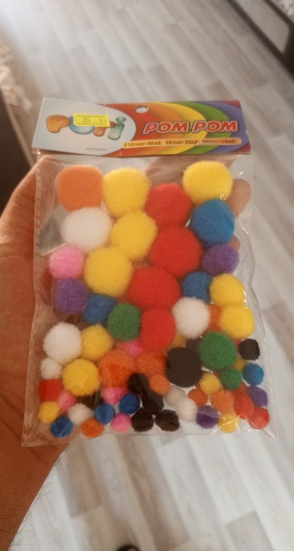 Farklı boy ve renklerde çok renkli ponpon seti, okul aktiviteleri ve el işleri için uygun. Canlı ve yumuşak dokuya sahip.