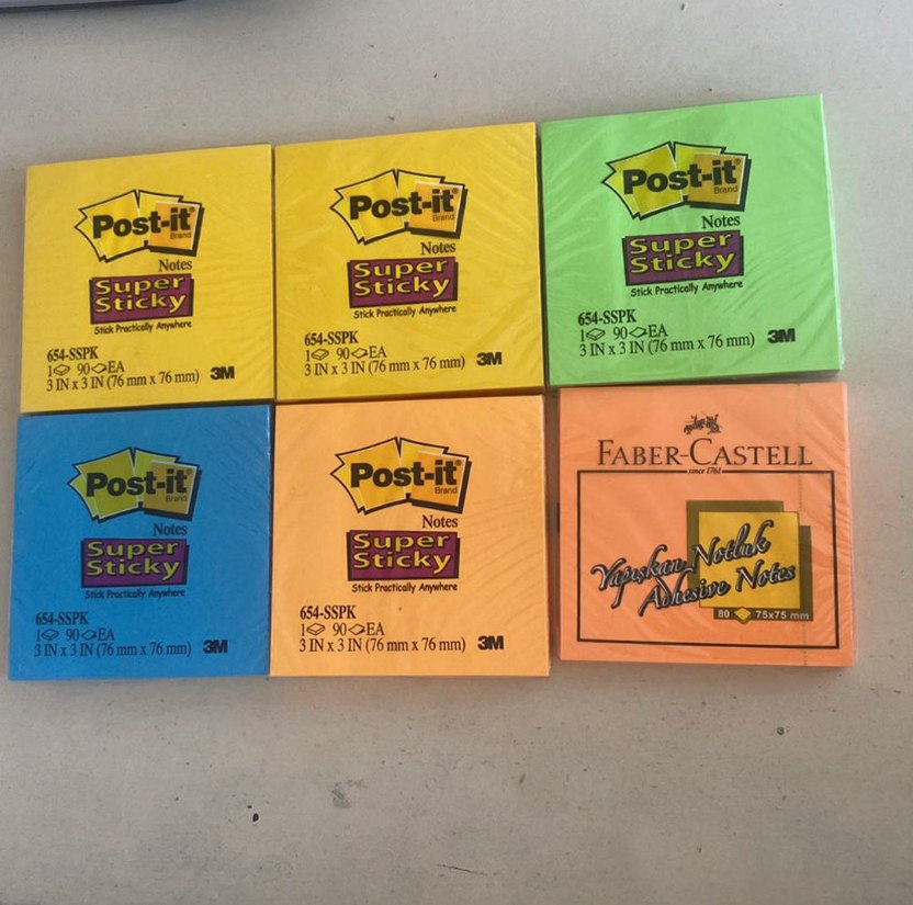 Bu çok renkli pastel tonlarda 3 x 3 inç (76 mm x 76 mm) Post-it not kağıtlarıdır. Pakette süper yapışkan notlar ve Faber-Castell yapışkan notlar bulunmaktadır. ADET FİYATIDIR