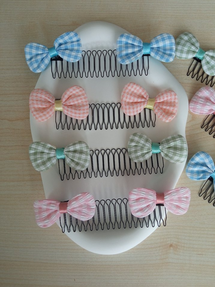 Çok renkli, puantiyeli desenli fiyonk detaylı, klasik tarzda çocuk saç tokaları. önden arkadan çıkan saçları toplamak için
