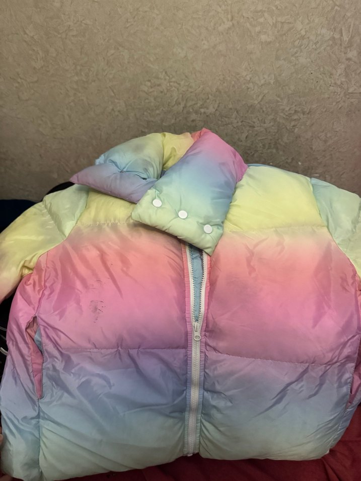 En fazla 3 4 kez giymişimdi çok temiz aşırı montum var ve sıra gelmiyor Bu dar kesim kışlık mont, yakalı ve uzun kolludur. Yumuşak ve sıcak kumaştan yapılmış, çok renkli pastel tie-dye desene ve midi boy uzunluğa sahiptir. ❄️