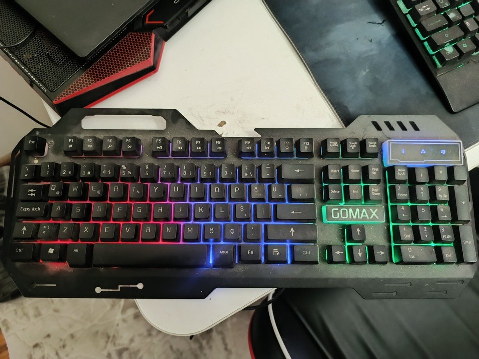 GOMA markalı klavye, çok renkli RGB aydınlatmaya sahip koyu renk tabanıyla dikkat çekiyor. Tam tuş takımı ve standart düzen sunar. çalışmayan aksanı yoktur