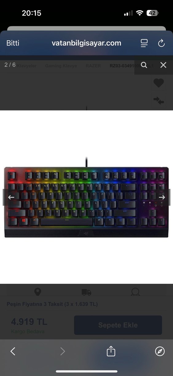 Koyu renkli, çok renkli RGB aydınlatmalı kompakt gaming klavye, etkileyici oyun deneyimleri için uygundur. Sıfır ayarında 1 ay kullanıldı.