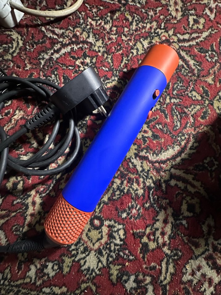 Canlı çok renkli tasarıma sahip saç düzleştirici, koyu mavi ve turuncu gövde ile güç düğmesi ve standart fiş içerir. Saç şekillendirme için uygundur. ♀️