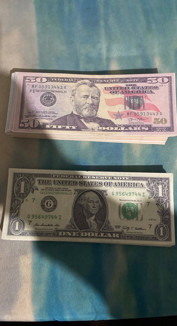 50 ve 1 dolar sahte banknotlardan oluşan çok renkli pastel tonlarında set. Hediye veya dekorasyon için uygundur.