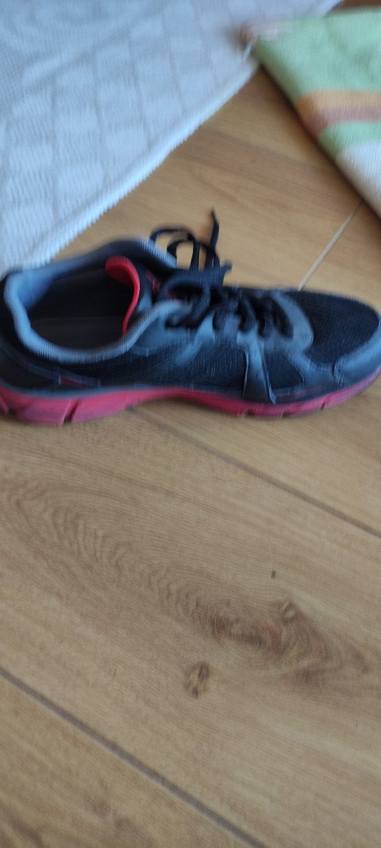 Koyu çok renkli spor ayakkabı, velcro ve bağcıklı kapanışa sahip, kauçuk tabanlı, streetwear ve athleisure tarzına uygun.