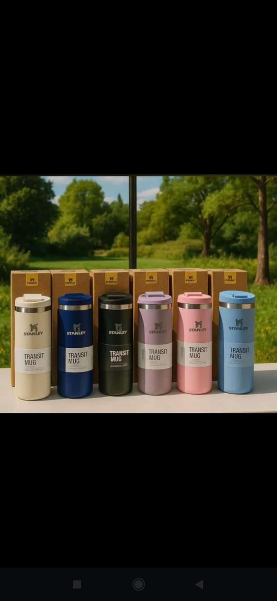 Stanley Transit Mug, içecekleri sıcak tutan çok renkli ve hafif termos şişesidir. Dayanıklı tasarıma sahiptir ve farklı renk seçenekleri bulunur. "TRANSIT MUG" yazılıdır. ☕