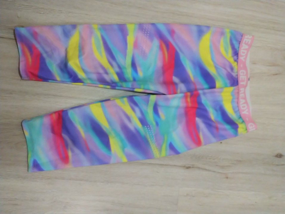 elastik sentetik kumaştan yapılmış, renkli tie-dye desenli, sportif ve athleisure uygun, midi boy dar kesim tayt. ♀️