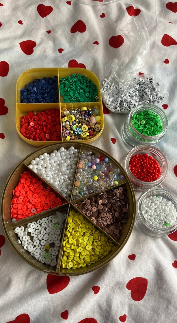 Farklı boyut ve şekillerde çok renkli tırnak süsleme boncukları ve pullar içeren set.