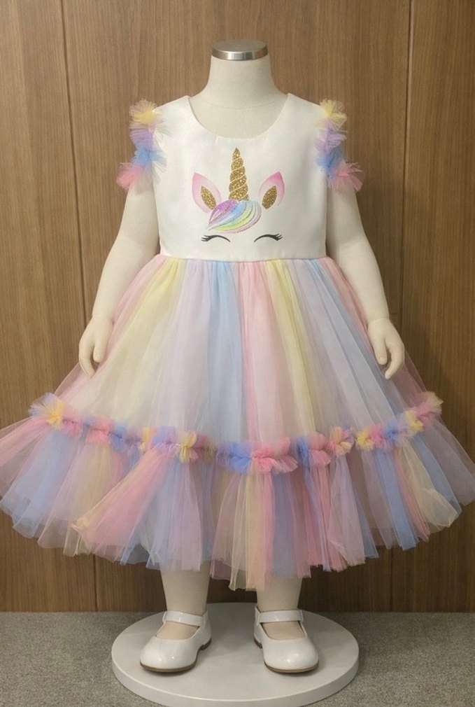 Çok Renkli Unicorn Kız Elbisesi