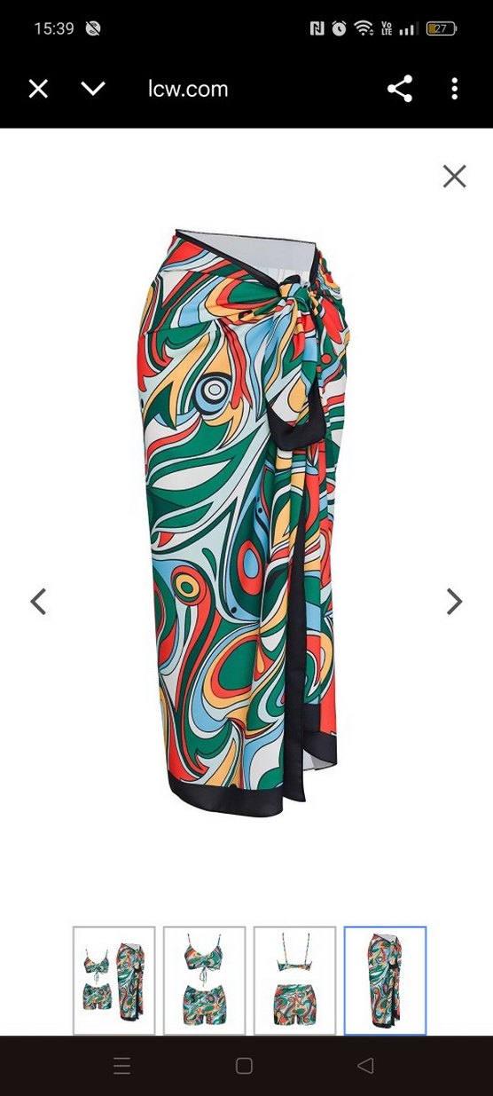 Çok renkli tie-dye desenli, uzun ve oturan kesimli, bağlamalı pareo. Günlük kullanım için uygun, bohem tarzda. Sailor marka