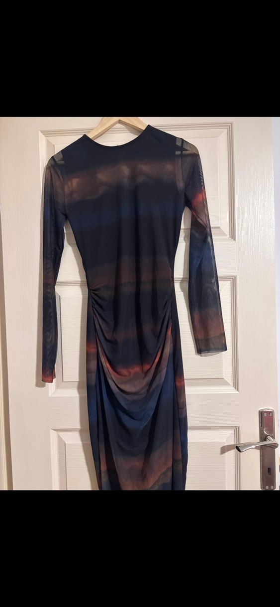 Çok Renkli Uzun Kollu Drapeli Kadın Elbise