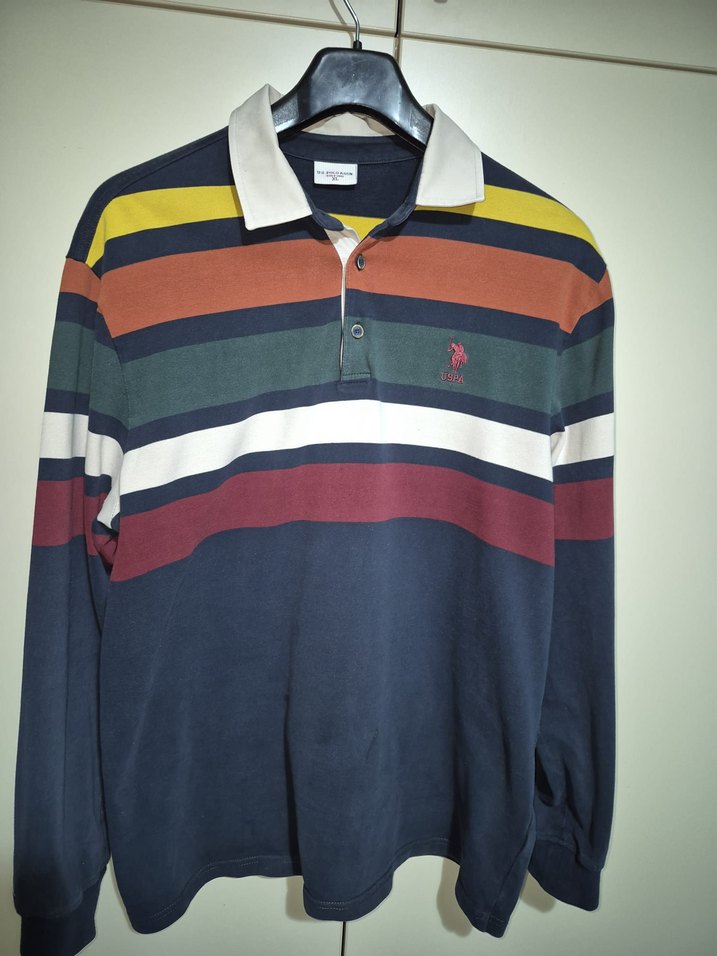 Düğmeli, çok renkli yatay çizgili, uzun kollu polo tişört. Yumuşak ve sıcak kumaştan, rahat kesimli, günlük sokak giyimine uygun.