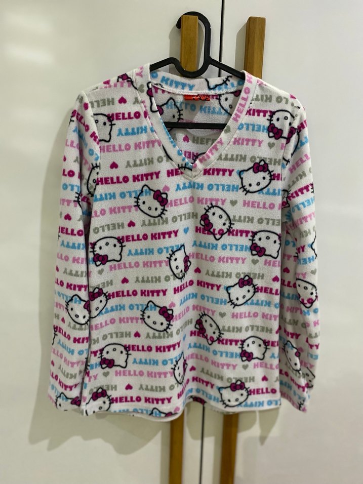 Kız çocuk için çok renkli, uzun kollu ve V yakalı, rahat kesimli bir gömlek. Hello Kitty baskılı, yumuşak örme kumaştan üretilmiştir. Trendy ve rahat tarz için uygun. Bi sene kullanıldı çok hoş hafif rahat bi polar severek kullandım xs s beden uyumlu
