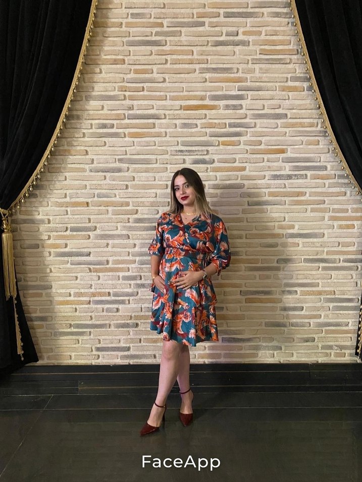 Çok renkli, V yakalı, drapeli ve askılı kısa elbise. Salaş kesimi ve tie-dye deseniyle günlük kullanıma ve düğünlük kullanıma uygun saten kumaş.