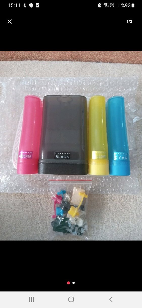 Siyah, macenta, sarı ve camgöbeği renklerinde yazıcı kartuşları ve montaj için küçük aksesuarlar içerir. ️