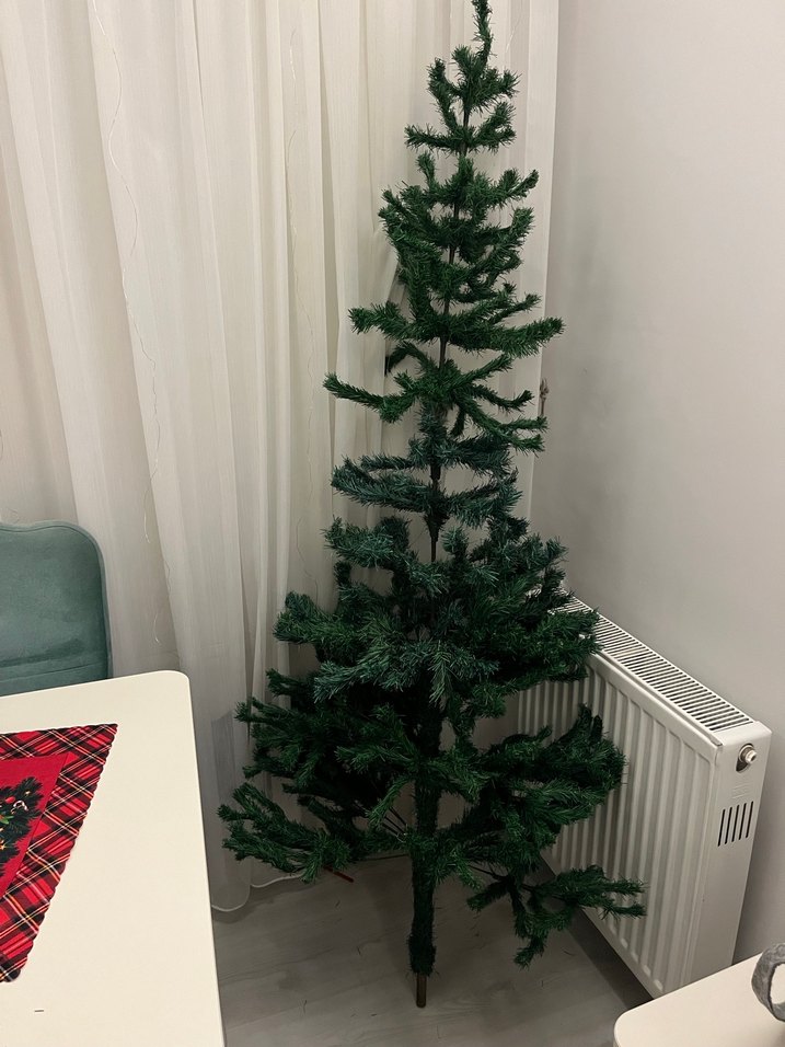 Normalde 150 cm dir ama ben ekleme yaptım 2 metreye yakın oluyor .görseldeki gibidir . Ayağı YOK bulamadım .süsler dahil değildir . Cansüs markadır .Lütfen dikkatli bakın iade kabul etmiyorum.